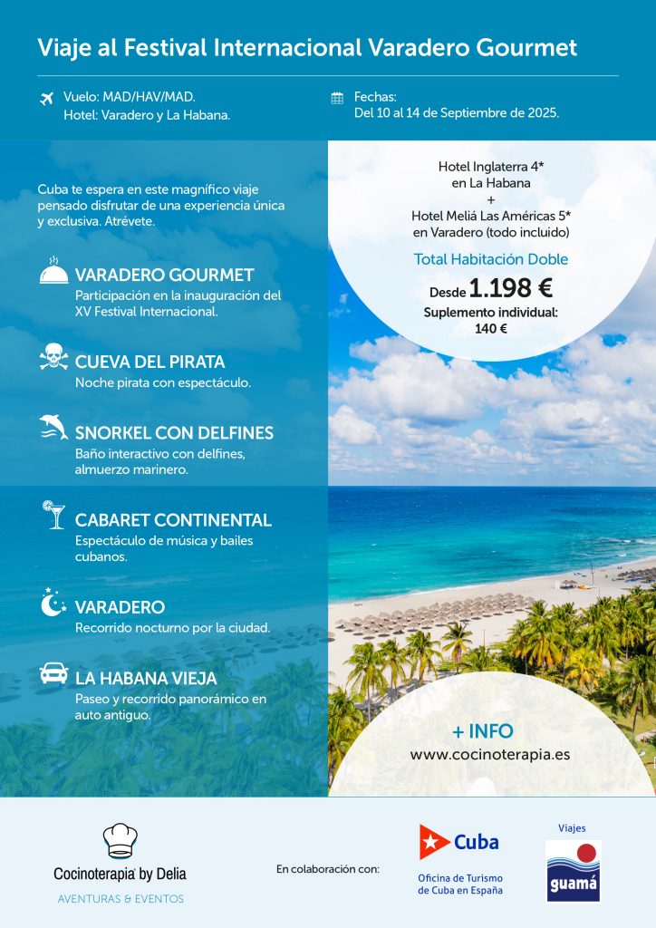 Cocinoterapia by Delia en colaboración con la Oficina de Turismo de Cuba en España y Viajes Guamá ha pensado para tí un magnífico viaje para disfrutar de una experiencia única y exclusiva.